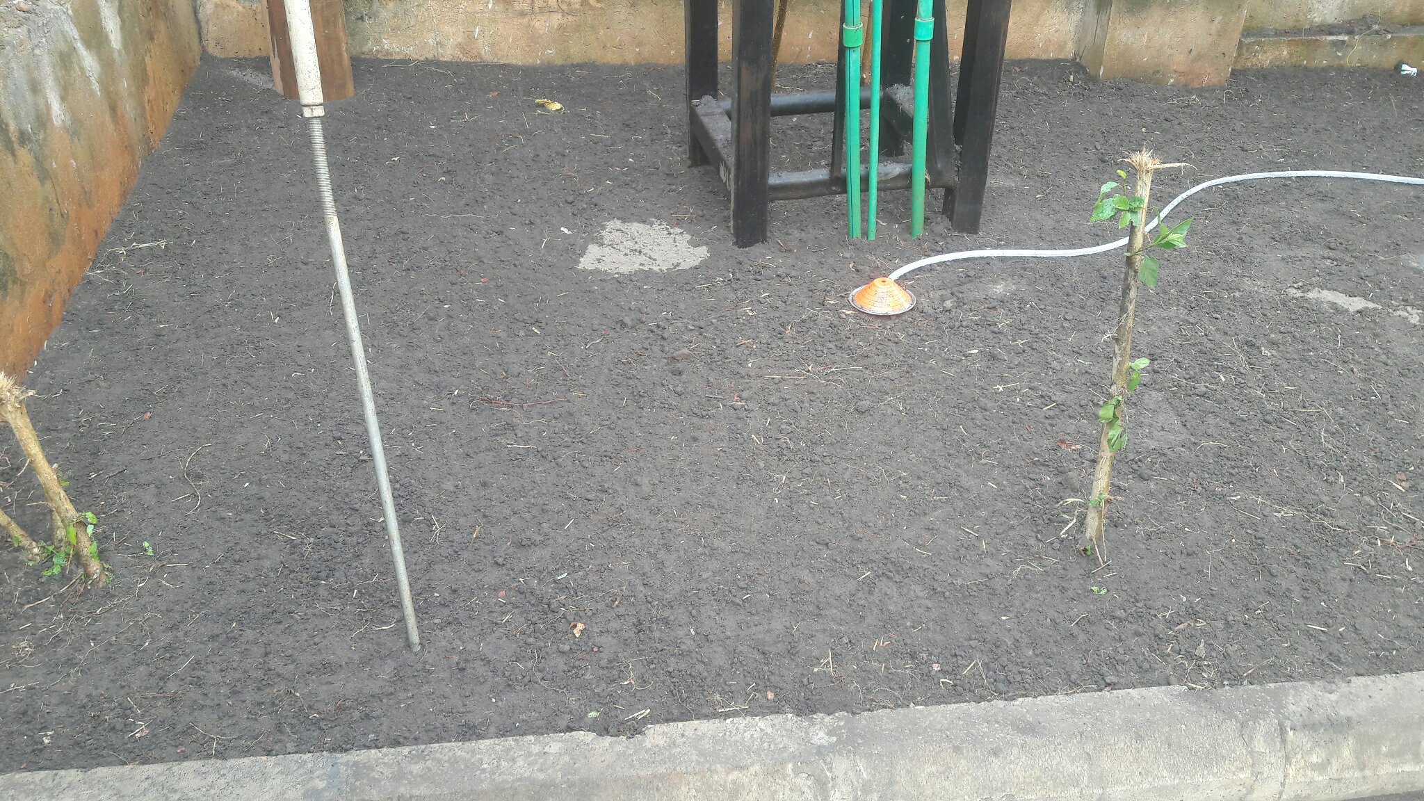 First we bought some black garden soil and created a raised bed as can be seen here.