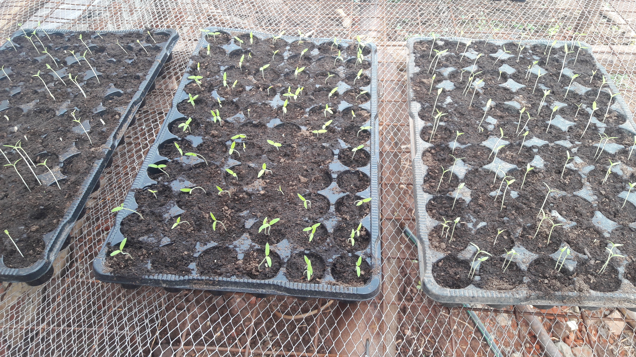 The seedlings are grown in plastic trays as can be seen from the pictures. The growing material is called peat moss which had to be imported from the Netherlands. Alternatively you can use ordinary soil. The only challenge is that ordinary soil is full of fungi and bacteria whereas the peat moss is inert and has high water retention properties.