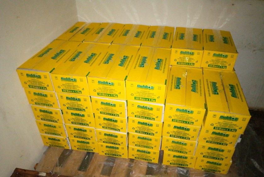(in the picture – a few cartons of one of our finished products – Bubboz laundry bar soap)